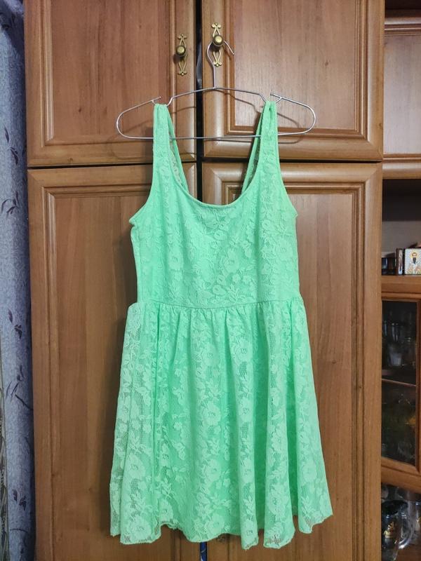 Мереживна літня сукня розміру XL може бути і на L гарного ніжно салатового кольору на спинці гарний та глибокий виріз