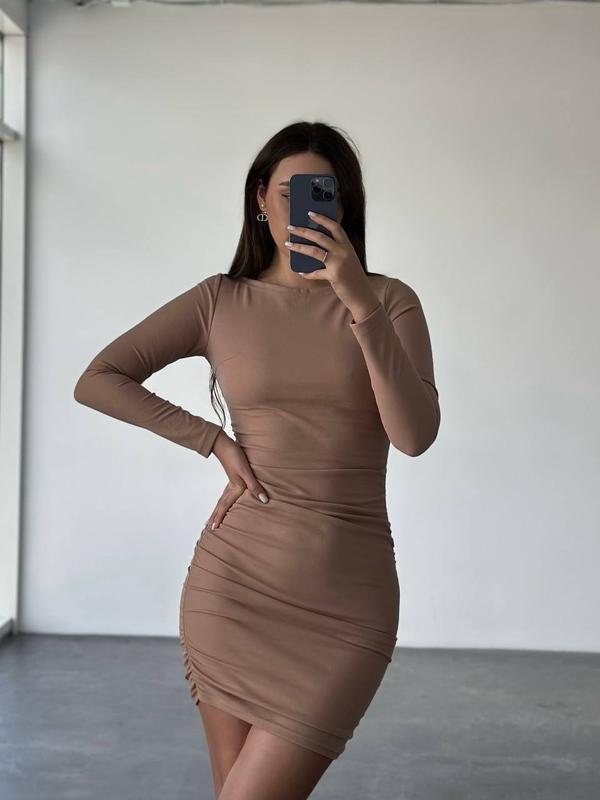 Плаття пуш апп зі збірками з боків⚡️Дизайнерський крій вигідно скоригує Вашу фігуру: збільшить попу та груди, приховає животик Довжину сукні можна регулювати під Ваш настрій З боків на резиночках. Тканина: крепдайвінг Колір: чорний, мокко Розмір: 42-46 ОГ 82-94 см ОТ 62-72 см ОС 88-100 см Довжина 75-83 см Рукав від плеча 60 см