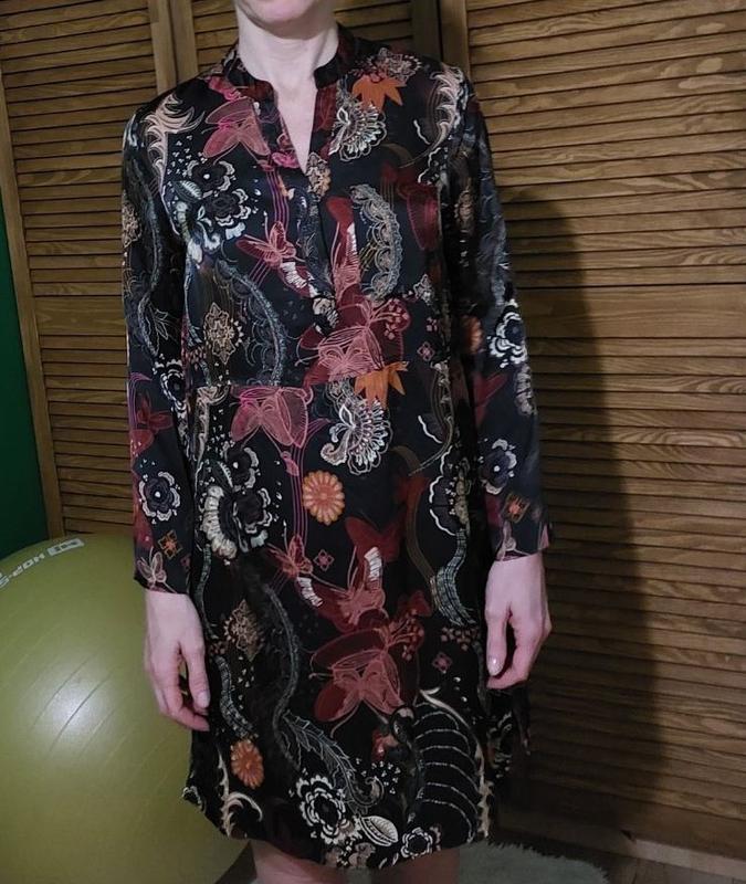 Красиве вільне ніжне плаття від odd molly. Спереду шов по лінії талії. Застібка прихована на 2 перламутрових гудзиках. Нагрудна кишенька. Ззаду чуть чуть зібране. З боків розпорки довжина 9см. Рукав прямий без манжети. Підігнуто на 6см. Склад 55% віскоза, 45% віскоза Lenzing ECOVERO™. Віскоза Lenzing ECOVERO™ шовковисто-м'яка, легка і дихаючий, краще зберігає колір ніж звичайна віскоза. На дотик плаття як шовкове. Привід: Повсякденний, офіційний, вечірка/коктейль, подорожі Заміри ШП 37, ПОГ, ПОТ 53, ширина внизу 63 см, довжина 92, довжина рукава 56см. Одягнене на розмір S, зріст 170см.