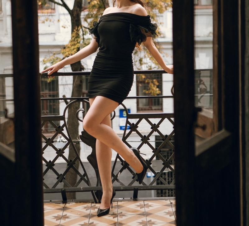 Сукня чорна міні. Рукава можна наверх і можна спускати на плечі. Куплялася в Італії. В районі бедер по бокам резинки. На рукавах рюш