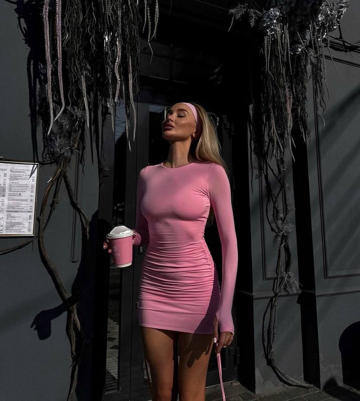 🪩Сукня на затяжках. Кольори: - барбі - чорний - шоколад - графіт - електрик - білий - малина ➡️Розміри: 42-44, 44-46 ➡️Тканина: якісний мікродайвінг (не скачується, тканина дуже гарно тянеться) Довжина 87см (регулюється)