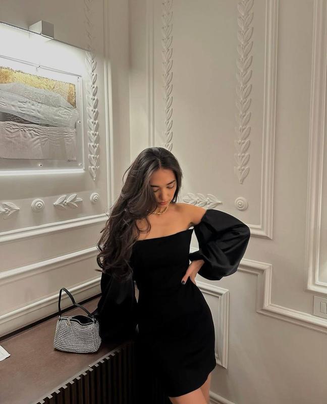 💥Новинка💥 Сукня ▪️Модель 022 ▫️Ткань : плотный креп дайвинг + атлас ▪️Цвет: черный ▫️Размер : Xs/S M/L 🏷Цена: 760 грн 🔥 🌿 Приталенная модель с объемными рукавами в длине мини. То само платье, которое станет беспроигрышным вариантом для любого случая