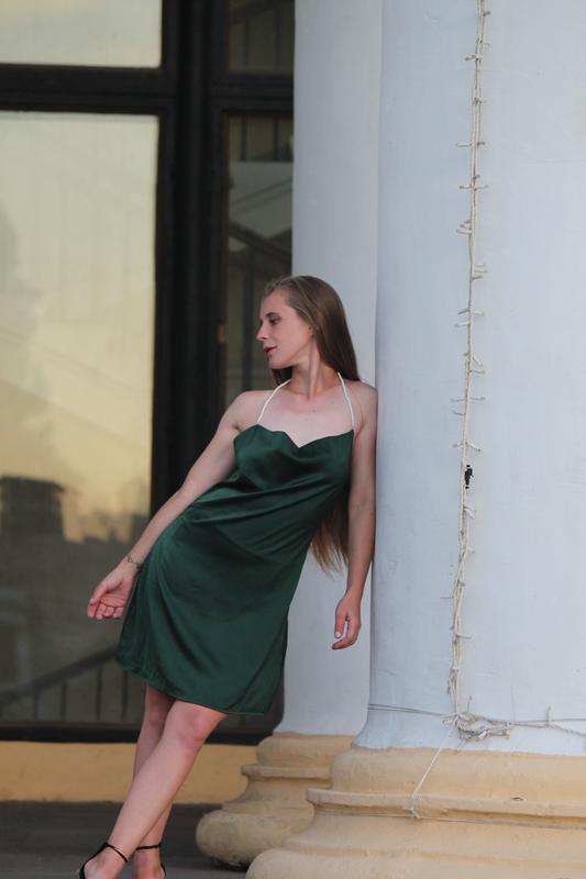 продам чудову атласну сукню в хорошому стані, з бретелью на шиї, відкрита спина, розмір s-m, Aсилует.