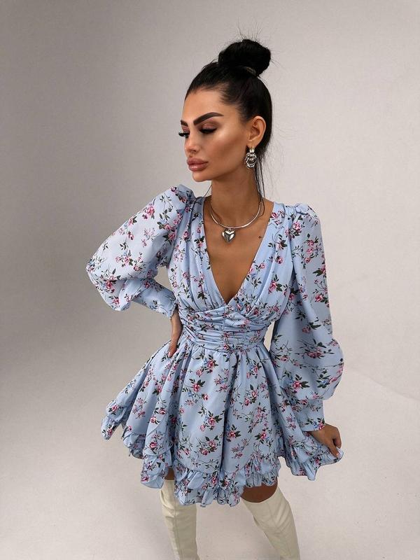 Сукня міні з пишною спідницею та драпіруванням на талії ▫️тканина: софт ▫️розмір: S та М ( L + 200 грн)