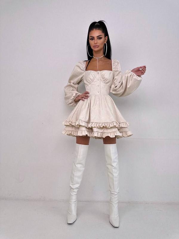 Корсетна сукня з пишною подвійною спідницею та рюшами 2490 🎩 ▫️ціна: 2170рн ▫️тканина: жаккард ▫️розмір: S та М ( L + 200 грн)