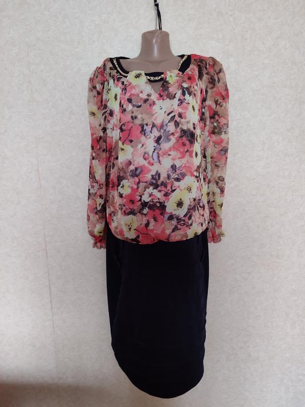 Комбинированное платье. Указан размер - 58. Верх с напуском на прямую юбку, которая имеет карманы