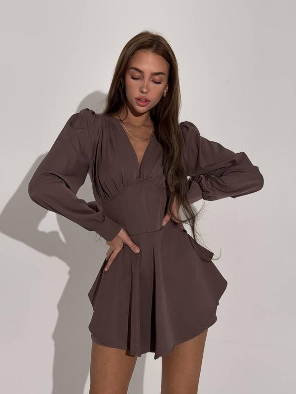 Сукня-комбінезон 🤍 ▪️Тканина: Костюмка люкс ▪️Розміри: 42-44; 46-48 ▪️Кольори: чорний, шоколад, бежевий ▪️Модель 289 🏷️Ціна 629 грн ✅ Безпечна оплата ✅ Відправка 1-3 робочих днів Сукня – комбінезон з імітацією корсета. Низ шорти❤️ Для замовлення звертайтеся 🥰