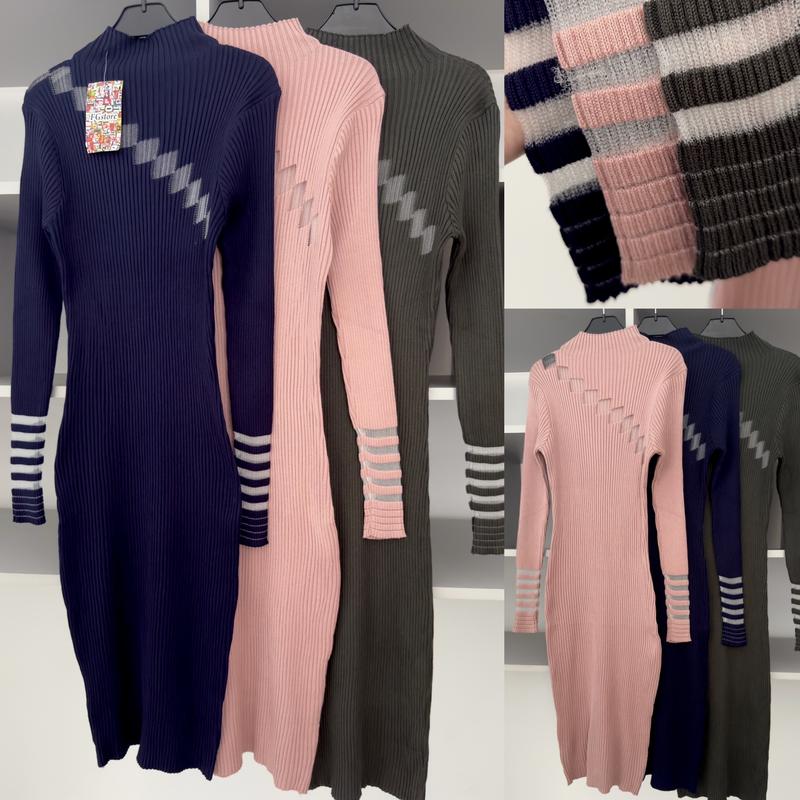 Ціна 450грн🔥🔥🔥 Якісні сукні- гумки😍 В трьох кольорах: темно-синій, пудра, хакі💙🩷💚 Дуже красиво підкреслюють фігуру. Якісні, не кошлатяться, Дуже добре тягнуться. В універсальному розмірі С/М Пог 35,рукав 57, довжина 101см