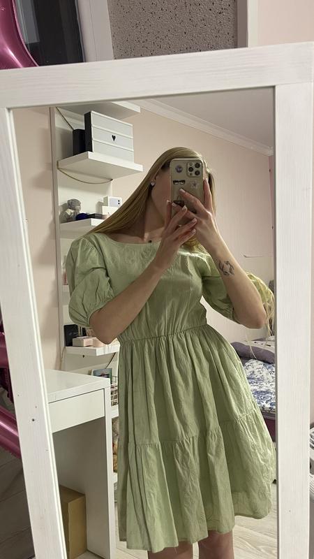 Літня сукня, світло-зеленого кольору, з красивою відкритою спинкою. Розмір М, на S трохи велика в плечах. Нова, одягалася тільки на примірках. Одягнута на зріст 168см.