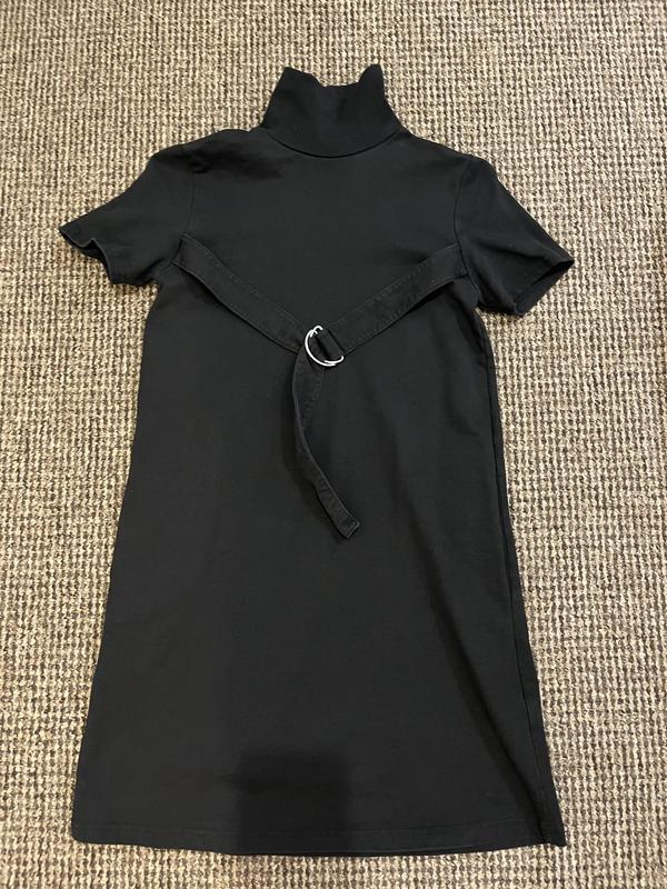 Міні сукня чорної котонова, під горло, щільний матеріал