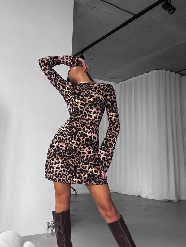 Сукня Модель: 0349 Розмір: 42-44; 46-48 Тканина: рубчик Колір: чорний, лео