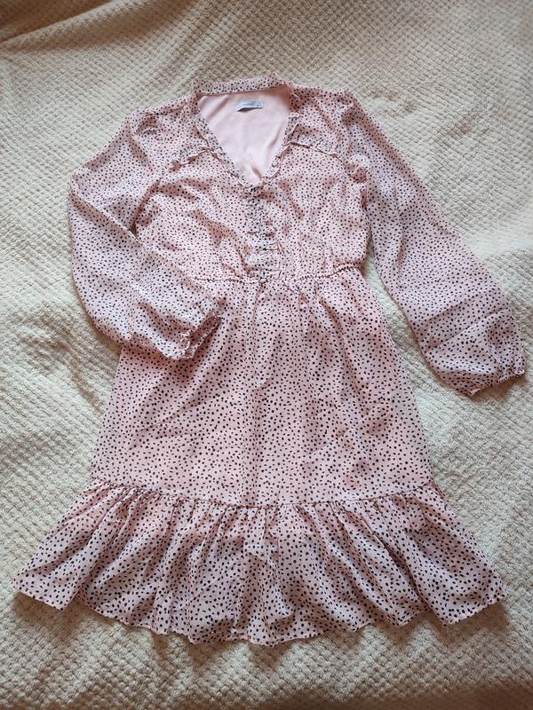 Сукня на підкладці, зручна та легка Одягнула всього 1 раз, лежить без діла) Легка, прозора, шифонова тканина, м'яка та приємна на дотик підкладка. На манжетах та талії - резинка. Без застібок