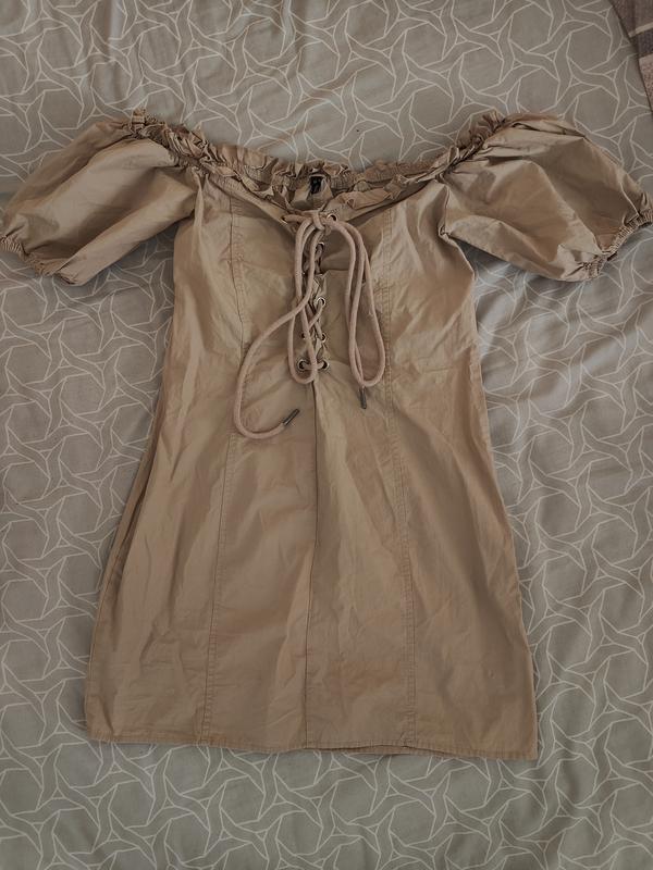 міні сукня з відкритими плечима на шнурівках ,збоку зомочок є підійде на s