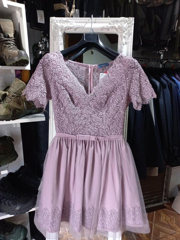 пудрова сукня розмір s- маленька м сукня нова, без дефектів з вирізом на грудях