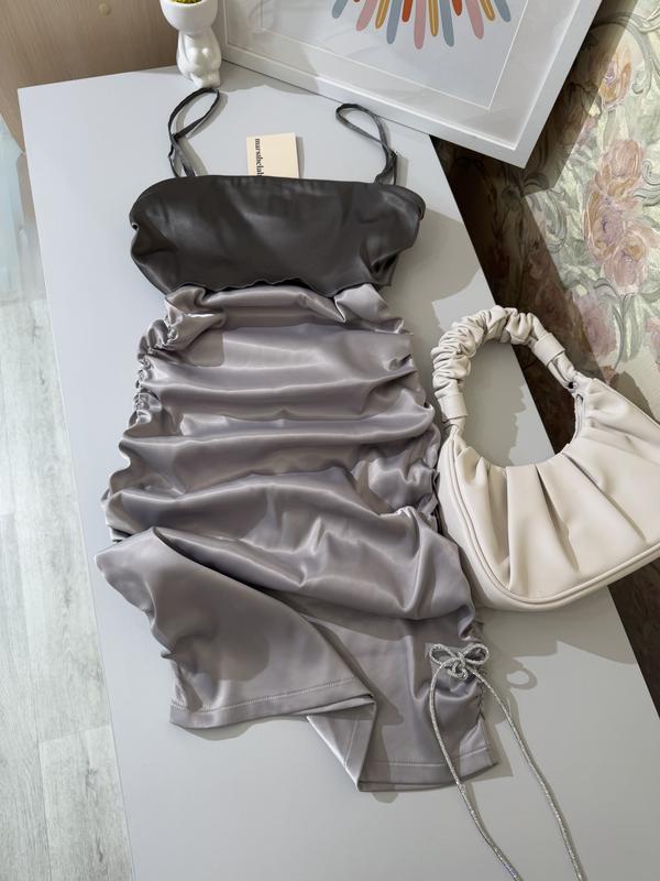 Шикарна сукня на брителях , тканина плотний атлас , якість супер , по бокам драпіровка , сукня яка доповнить вас Розмір S дивіться заміри ОГ 39-42 см ОТ 32-35 см ОС 42-45 см Довжина виробу 87 см За додатковою інформацією пишіть 💌 При покупці 2-ох і більше речей , для вас буде додаткова знижка🌷🌷🌷