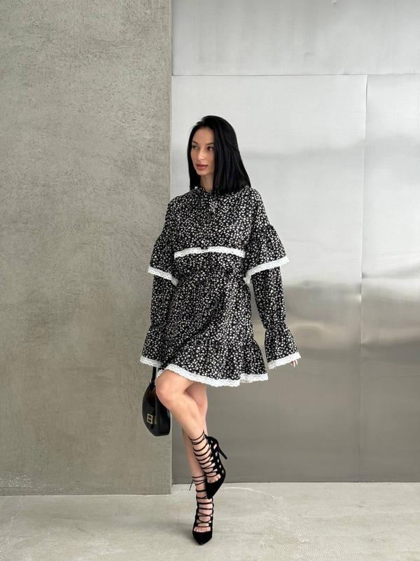 Сукня Мод: 1354-6024 ▪️Розмір: 42-44, 46-48 ▪️Колір: чорний в квітку ▪️Тканина: софт + мереживо 42-44 ОГ-102 ОС-106 Довжина-90 Рукав від горловини-84 46-48 ОГ-114 ОС-118 Довжина-92 Рукав від горловини-85