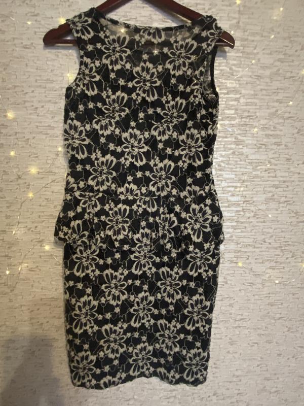 Сукня з баскою, коротка. Є підкладка. Розмір s-m. Гарний стан. Тканина майже не тягнеться. Заміри на фото.