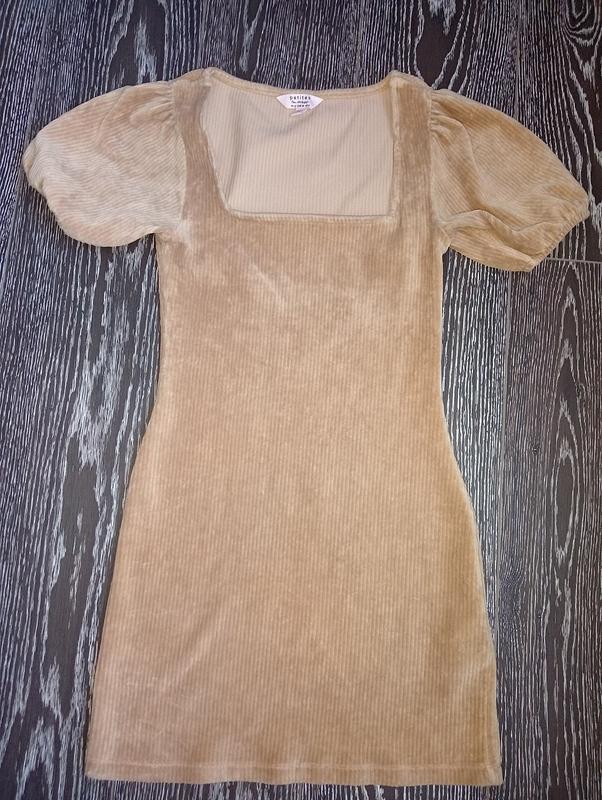 шакарное трендовое платье мини,квадратный вырез,рукавчик фонариками,вельвет рубчик,очень хорошо тянется...на размер С-М замеры ог 42-51см,талия 36-46см,бедра 45-56см, длина 83 см
