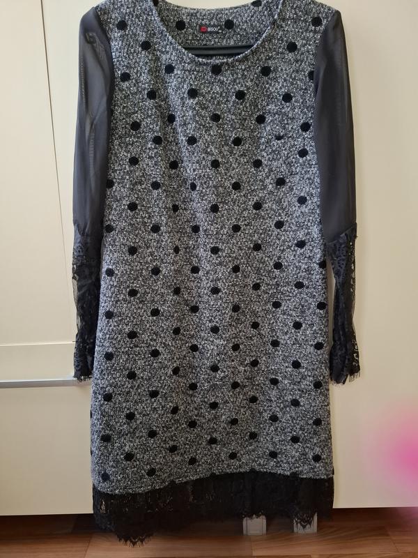 Платье новое,покупала себе,но поправилась стало маленькое,очень красивое. Осново трикотаж, по спине змейка нет.Размер на М. Длина 96см Длина рукава 64см ПОГ 44см Шир спинки 39см Остальные замеры напишу если надо дополнительно Было короткое, сама дошивала внизу.Рукава прозрачные,с кружевом на краях,внизу на рукаве резинка.