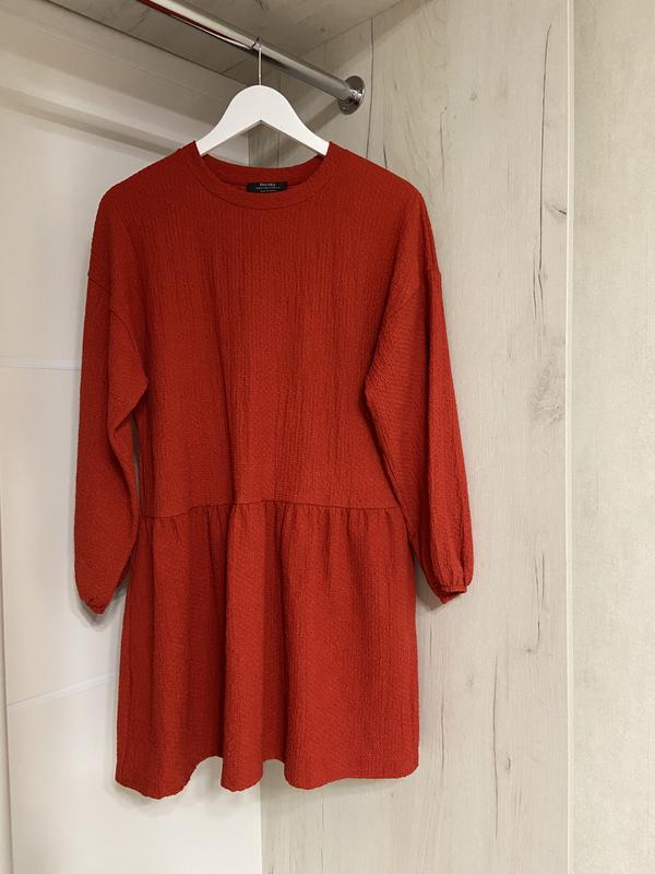 Платье из фактурной ткани, эластичное. Выглядит стильно, удобна. Без дефектов. Замеры: пог 45см до 55см, длина 85см.