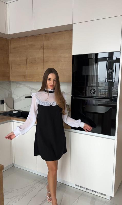 Сукня з трендовым поєднанням чорного та білого 🔥🔥🔥 Сукня Модель 168 Тканина: креп дайвінг, шифон Розмір: 42-44, 46-48, 50-52 Колір: чорний з білим 🔹 Від романтичних вечорів до святкових заходів — ця сукня стане вашим надійним союзником в створенні незабутніх образів. Обирайте стиль, обирайте якість — обирайте нашу чорну сукню з легким білим шифоном та рюшиками! 🖤 Якість 💣 Виміри Модель 168 Розмір 42-44 Напівоб'єм грудей 44 см, напівобʼєм стегон 56 см, довжина рукава від плечового шва 63 см, довжина виробу по спинці 87 см Розмір 46-48 Напівоб'єм грудей 48 см, напівобʼєм стегон 60 см, Довжина рукава від плечового шва 63 см, довжина виробу по спинці 87 см Розмір 50-52 Напівоб'єм грудей 52 см, напівобʼєм стегон 64 см, довжина рукава від плечового шва 63 см, довжина по спинці 90 см Виміри по виробу. Можлива похибка 1-2см