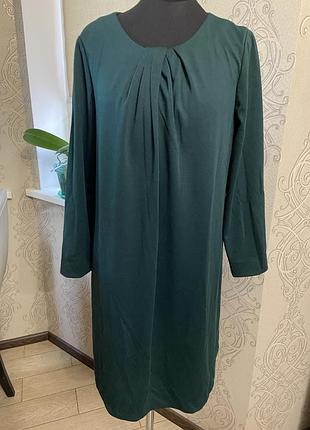 Трикотажное платье красивого зеленого цвета с подкладкой. Ткань достаточно плотная, держит форму. По спинке длинная молния. Замеры : длина по спинке -88см, длина рукава -58см, пог-53см, низ-58см, в талии свободная.