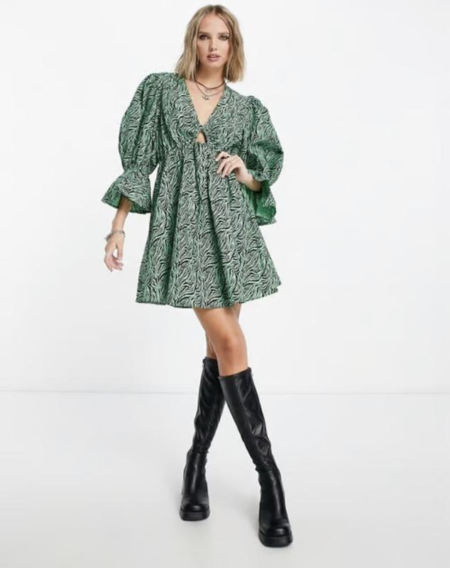 Сукня міні з пишними рукавами буфи принт зебра, бебі-дол, котон