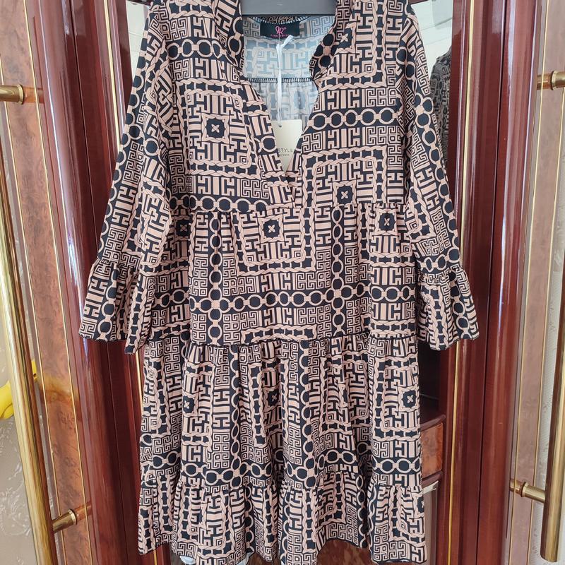 Плаття розміру L-XL. Залежно від росту, можна під лосини. Висока європейська якість. Італія. Тканина схожа на поплін. Вільний крій, з ярусами, кокеткою. довжина - 83 см. Колір світлий не передається. Чорний та кава з молоком. Ближче фото з етикеткою. Фірма - Pink Royal