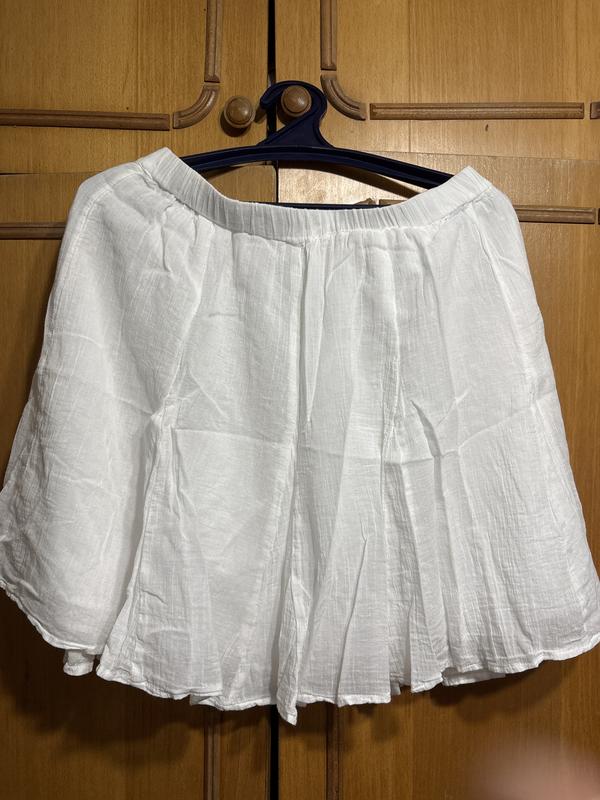Спідниця нова, під нею є чохол, тому не світиться білизна. Легенька та воздушна, тканина жатка. Пояс на резинці. Заміри: ПОТ 38 см, тягнеться до 52 см, довжина 45 см.