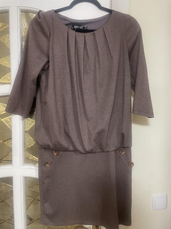 Платье теплое с заниженной талией с напуском. Рукав 3/4. До колен. В отличном состоянии