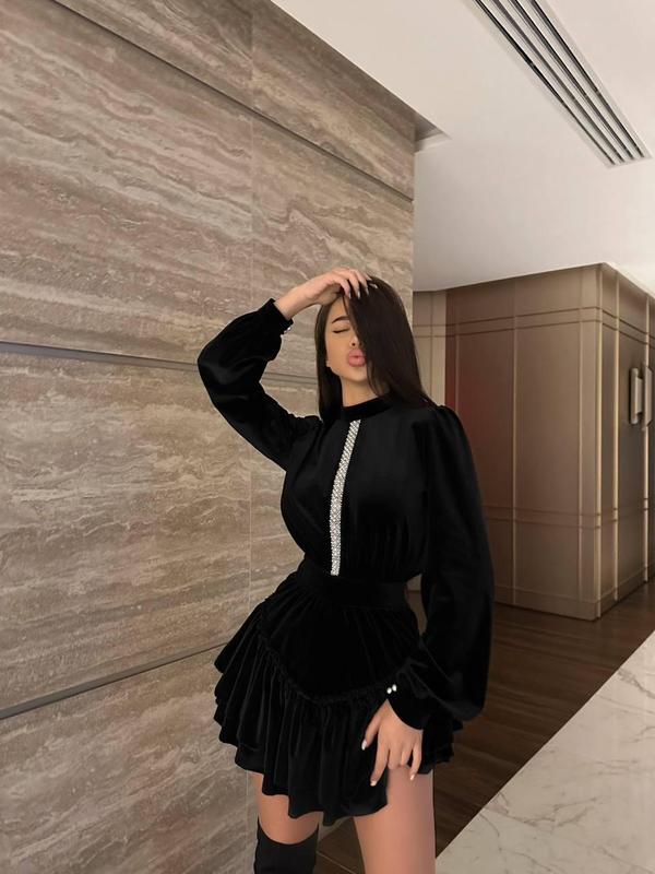 Bestseller 💫💫💫 Вишуканий комбез з преміального бархату з прикрасами з перлин Коротенька пишна спідниця ,Шортики для зручності, пишний рукав - та найголовніше- тканина - в оксамиті всі сукні виглядають дуже дорого та вишукано Ґудзики Перлинки , прикраса з перлин в зоні декольте - виглядає просто 🤩🤩 Ідеальний вибір на будь яке свято або вихід Розмір с(42-44)