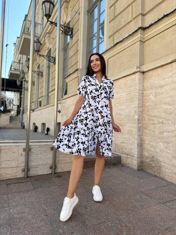 Сукня Розміри : 42-44, 46-48, 50-52, 54-56 Сукня з натуральної тканини ,середньої довжини, вільного крою , рукав короткий , талію можно підкреслити ременем. Ґудзики всі робочі. Тканина : супер-софт Кольори: білий ,кавовий,блакитний Ціна: 615 грн
