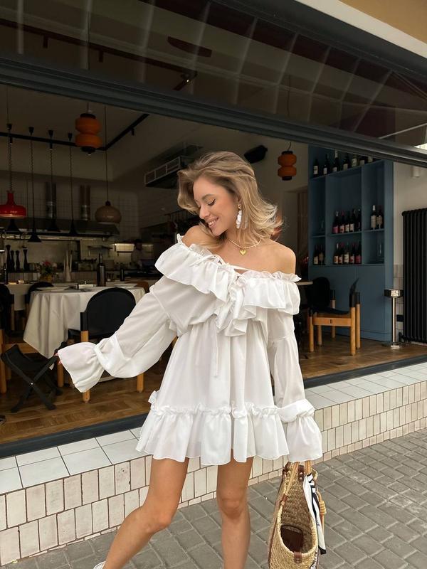 Арт 4942-314 Неймовірно легка, ніжна сукня Можна носити в двох варіантах , спустити або підняти на плечі Спідниця подвійна ▪️Тканина - креп-шифон ▪️Колір - молочний , чорний ▪️Ціна - 970 грн ▪️Розмір - one size (s/l)