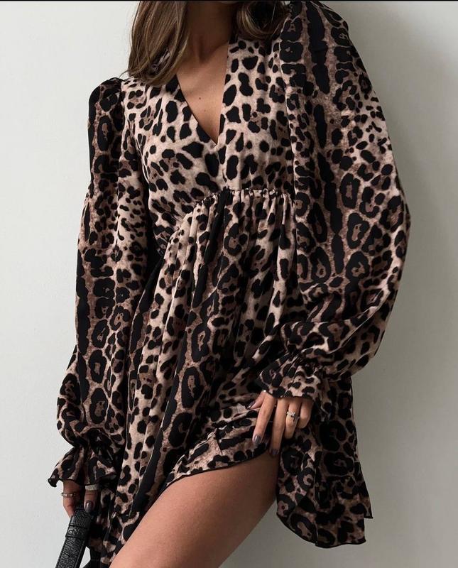 Арт 1433-223 Сукня Тканина : софт лео Колір : леопард Розмір :єдиний (42-46) Ціна : 930грн Вишукане леопардове плаття з воланами 😍 Одягай його і на романтичну зустріч, і на прогулянку з подругами 😉 Під грудьми йде на резинці , що дозволяє сукні ідеально лягти по фігурі