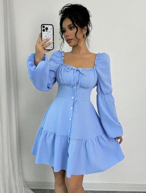 Люксова оригінальна сукня міні з квадратним декольте і довгими рукавами