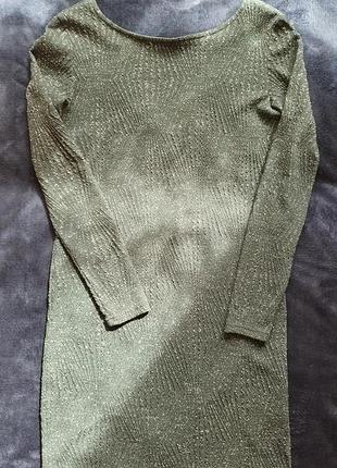 Платье из люрексовой ткани, красивого изоумрудного цвета, внутри колоть не будет! Спинка имеет красивый вырез, возможно носить и заранее в качестве декольте. Длина 84, рукав 59, ПОГ 42.