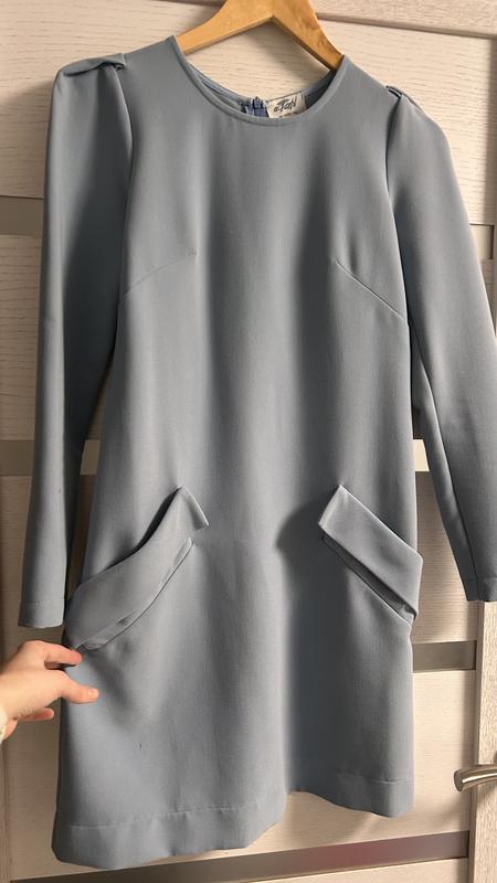 Сукня українського дизайнера Андре Тан міні з довгим рукавом, сіро блакитного кольору . Цікаві плечі фонарики . Розмір ХС, але підійде і на С. Гарно на зріст 170