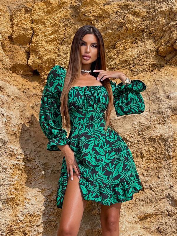 🌸Сукня🌸 Модель: 51 Розміри 42-46,48-52 Тканина: Шелк / Софт Колір: Чорний з Зеленим По талії ширина регулюється. Розмір: 42-46 обхват грудей 90-96см Розмір: 48-52 обхват грудей 96-108см. Довжина міні 87см Спідниця клеш на 140см