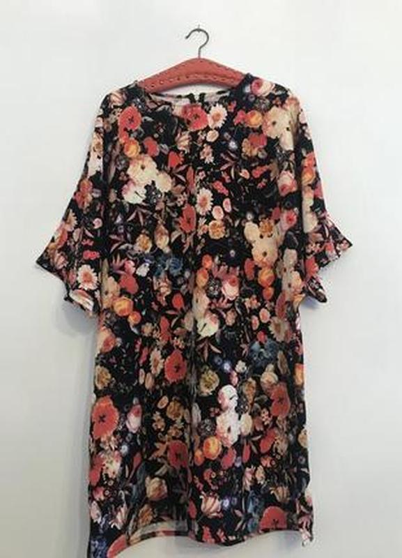 Дуже красивий дизайн плаття. Стан ідеальний, без дефектів. Розмір вказаний 12, підійде на різні, міряйтеся за вимірами зазначених в описі. Матеріал щільний поліестер, добре тримає форму та практично не мнеться. Не засперечується, підкладки немає. Довжина по спині 93 Рукав від коміра 47 НОГ від65 до73 (завдяки рукава-реглана) НОТ від58 до 64 Поб от57 до62