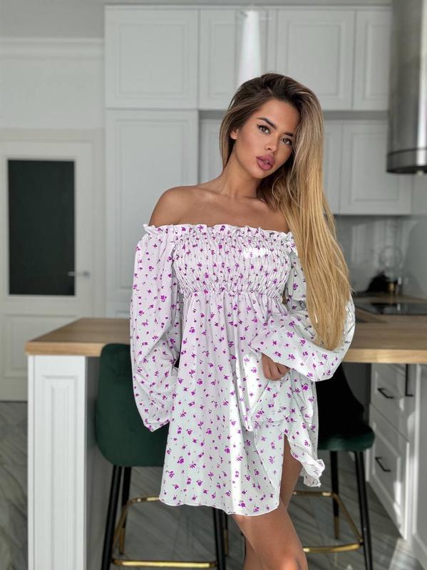 Сукня Мод: 1486-559 ▪️Тканина: софт принт ▪️Колір: білий з рожевою квіткою, білий з блакитною квіткою ▪️Розмір: 42-46