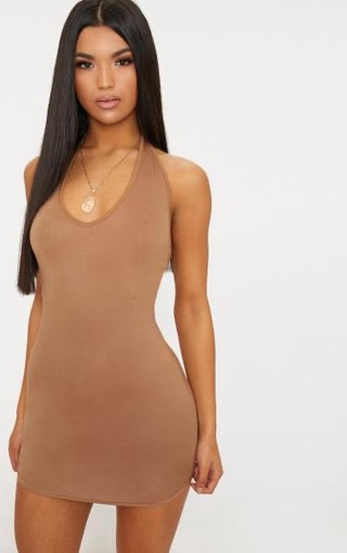 Коротка сукня коричневого уольору prettylittlething uk-14