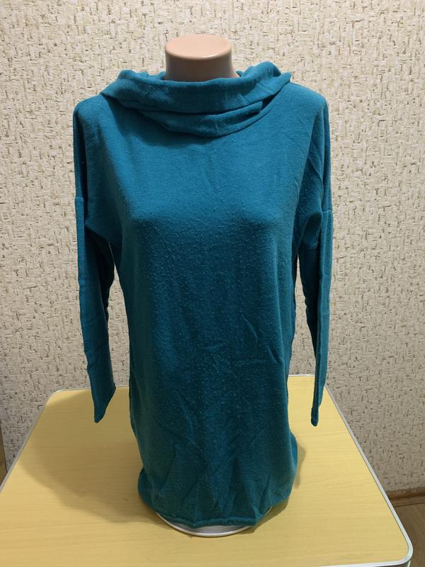 Плаття трикотажне мʼяке та тепле. Комір шаль/капюшон. Ззаду довше. Має невеликі катишки. Заміри на фото