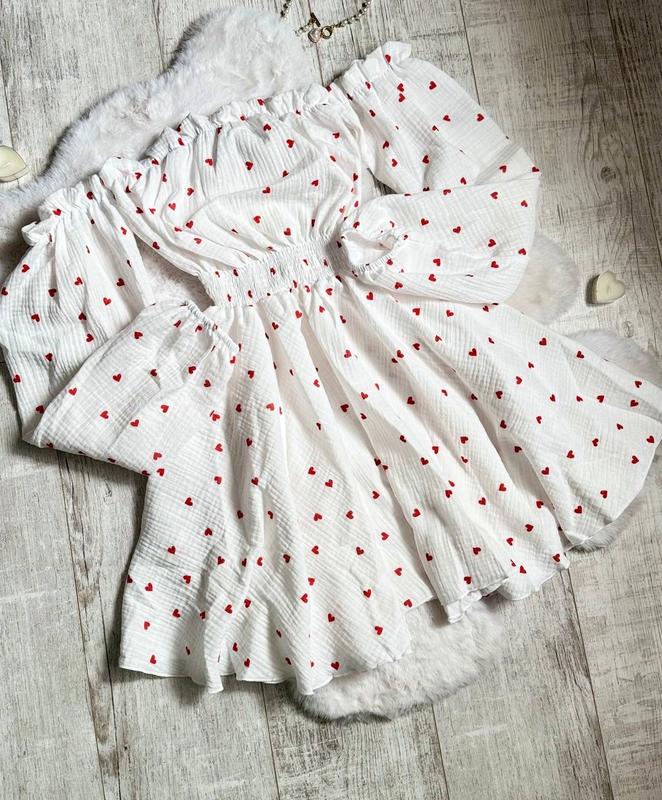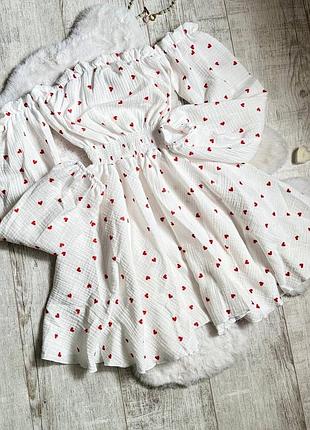 🔥Фото Реал ♥️ Ніжне плаття із сердечками Мод: 675 лл Муслін 100% хлопок ❣️Тканина дуже приємна до тіла Кольори: точно як на фото Розміри:42-46 ⬆️ 830 грн