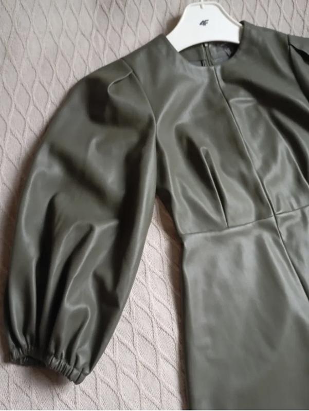 Неймовірна сукня з екошкіри кольору хакі в розмірі М