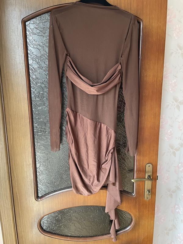 Міні сукня у шоколадному кольорі, прозорих верх з щільною вставкою на груднях .