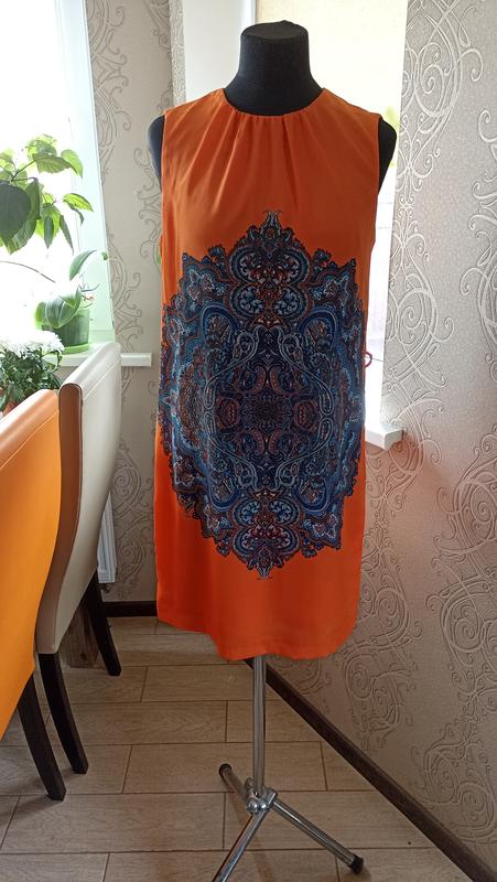 Яскрава сукня міні на підкладці. Тканина якісна, не розтягується. Заміри : довжина по спинці -86см, пог-47см, низ-52см.