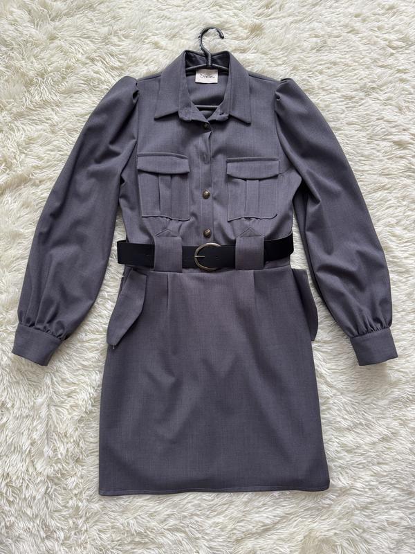 Довжина 90см, напів бедра 50см, напів талія 40см, напів груди 44 см(трохи тягнеться), плечі 35см, рукав 62см Йде в комплекті з поясом Стан нового, одягнулося двічі, початкова ціна 2400
