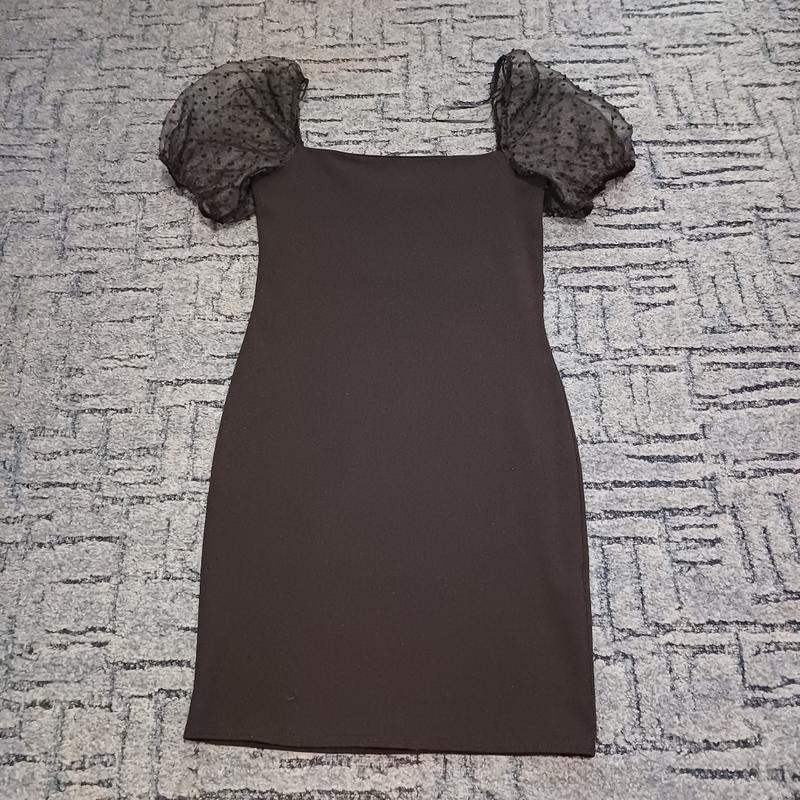 маленька чорна сукня, яка має бути в гардеробі кожної дівчинки. дуже гарна тканина тягнеться, але це цупкий трикотаж рукавчики дуже миленькі фонарики на грудях подвоєна тканина,тому форму тримає ідеально розмір Л, думаю підійде і на М