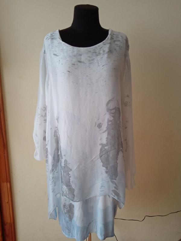 Довжина 91 см. Рукава 64 см. Напівоб'єм в грудях 60 см Підкладка трикотажна напівоб'єм в грудях 50 см. плюс ще тягнеться.Розмір не вказаний, орієнтуйтеся на заміри.. Думаю,що на L XL підійде.