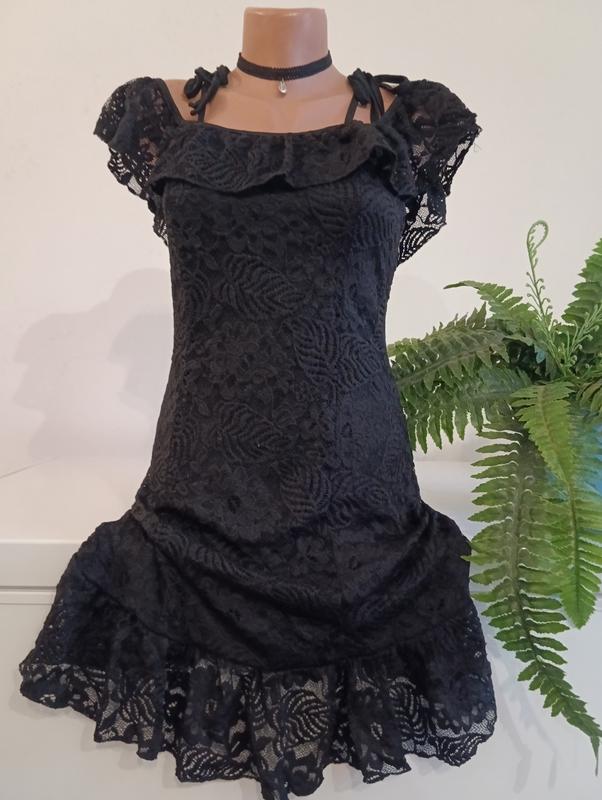 Чёрное платье, коктейльное. Идеально ложится по фигуре.